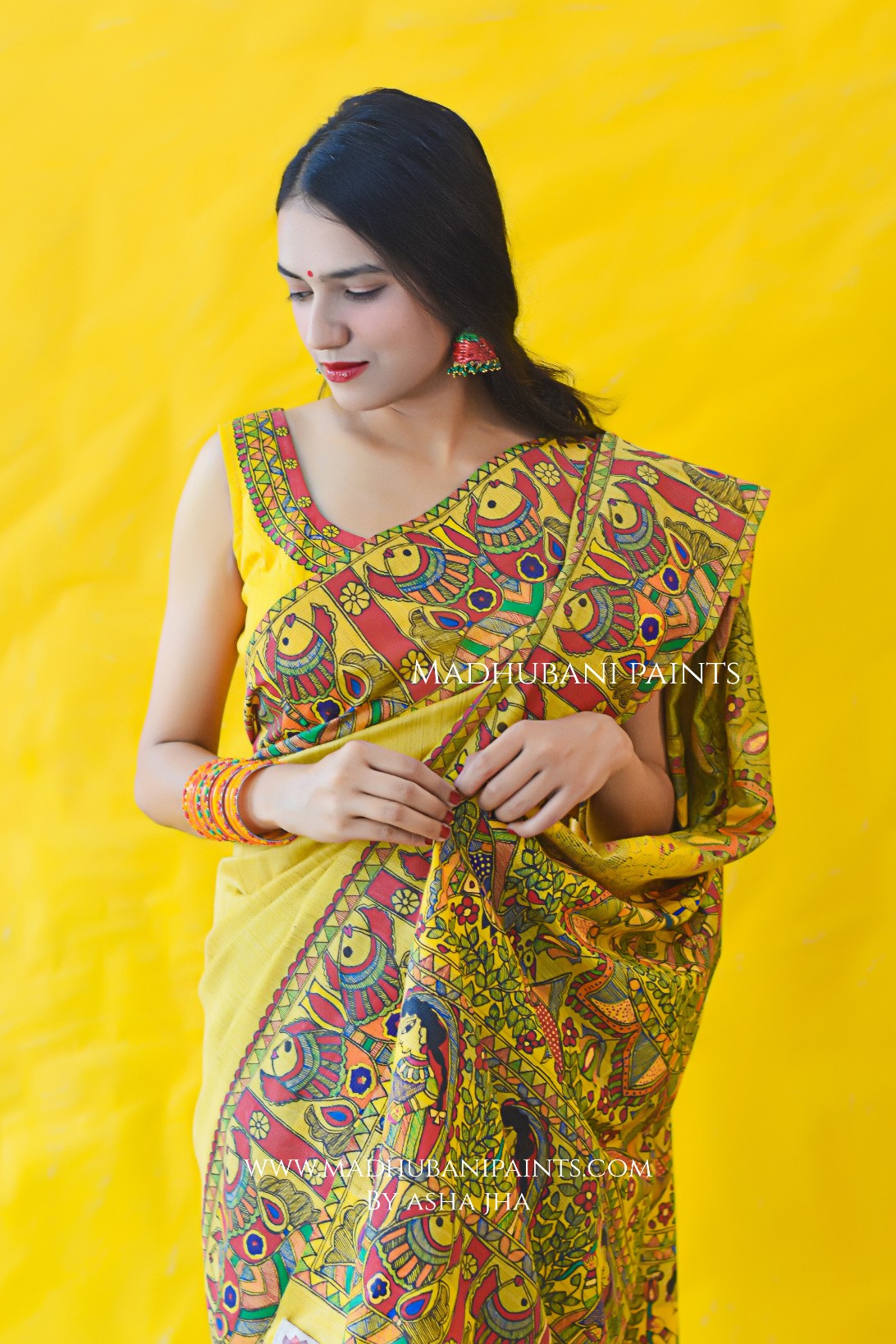 SUBH VIVAAH Hand-painted Madhubani Chanderi Saree Blouse Set