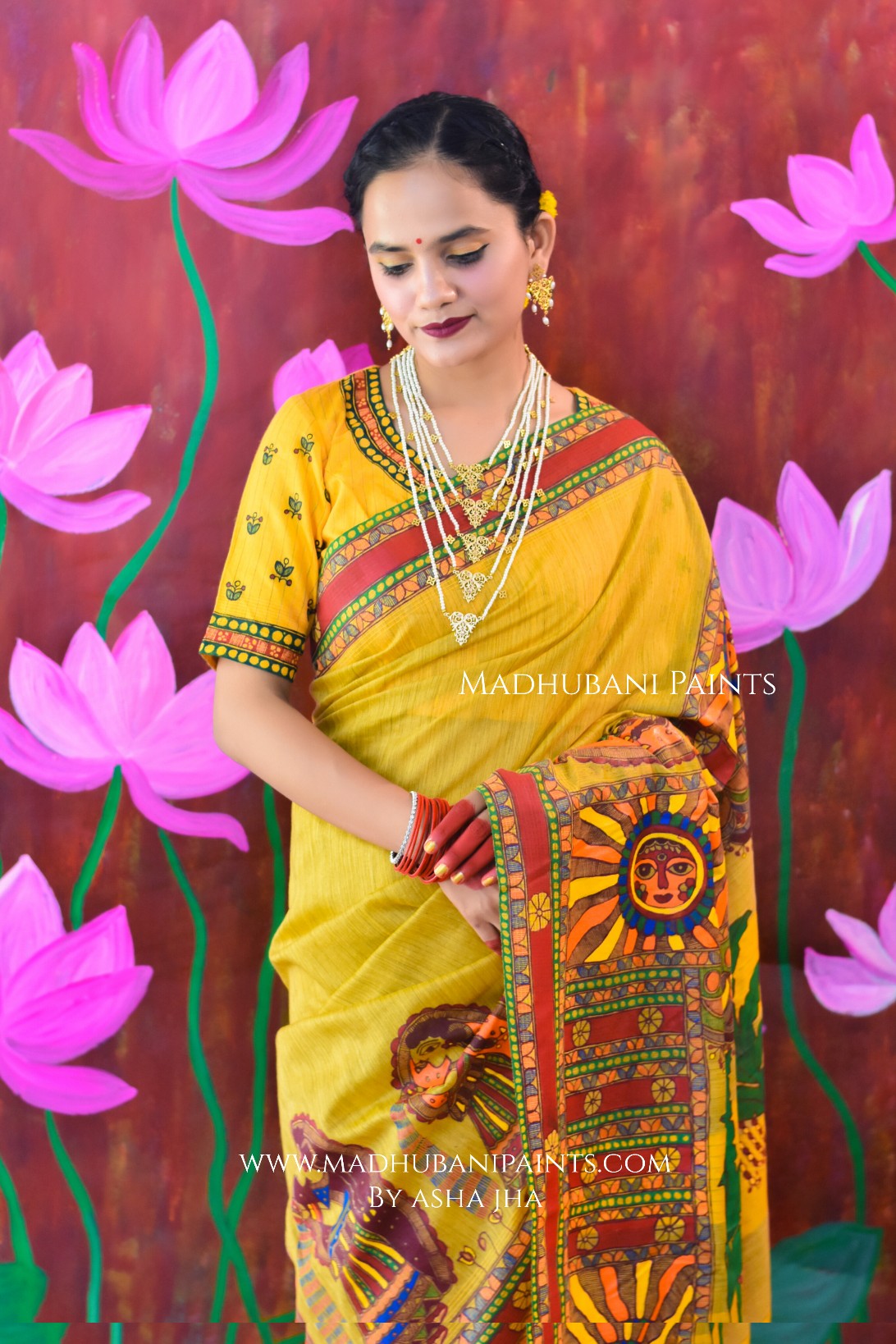 CHHATH MAHOTSAV Handpainted Madhubani Chanderi Saree