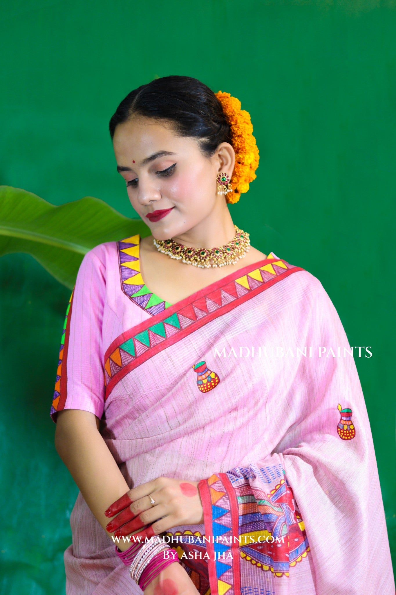 CHHATHI MAIYAA Handpainted Madhubani Chanderi Saree