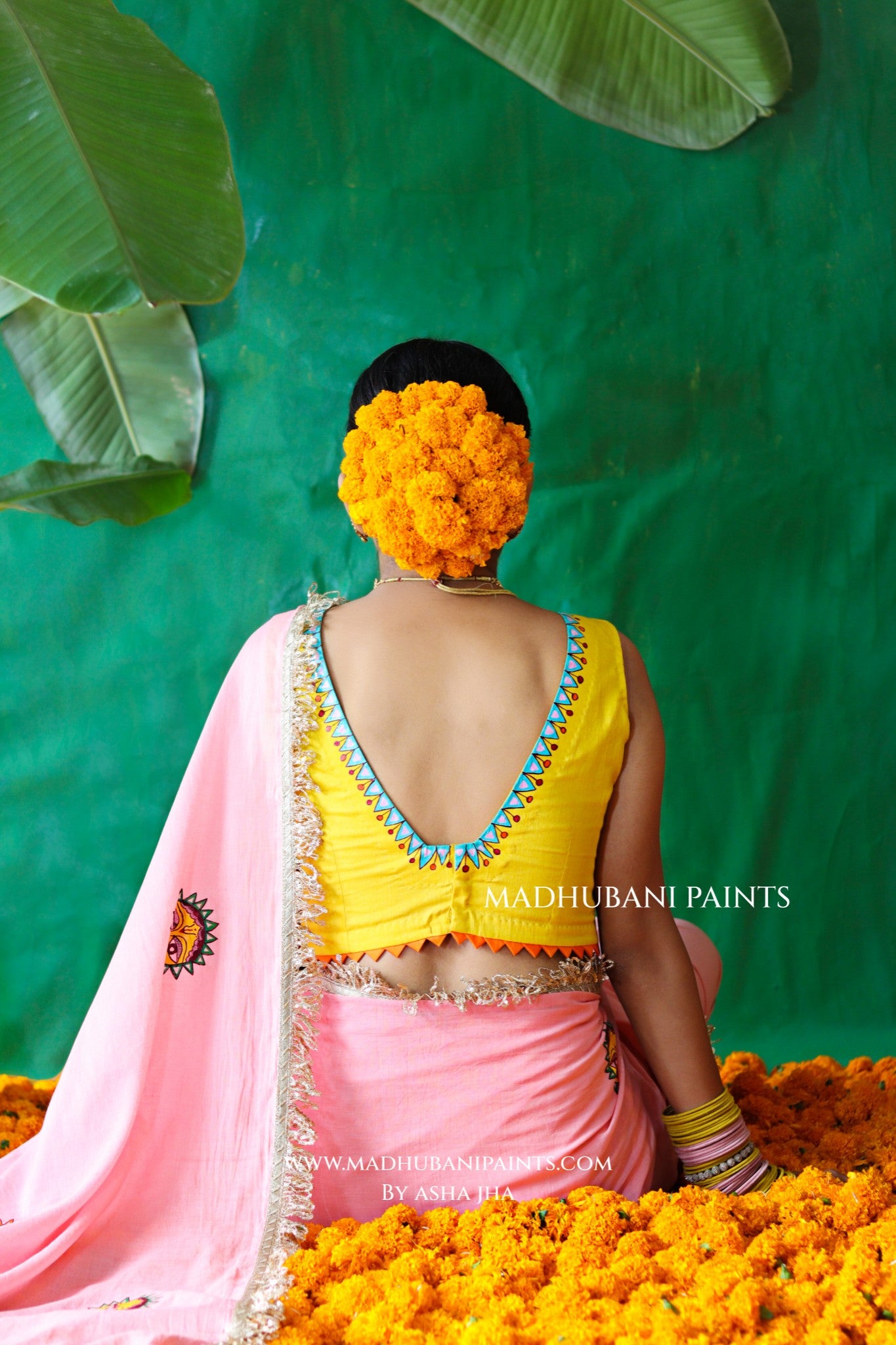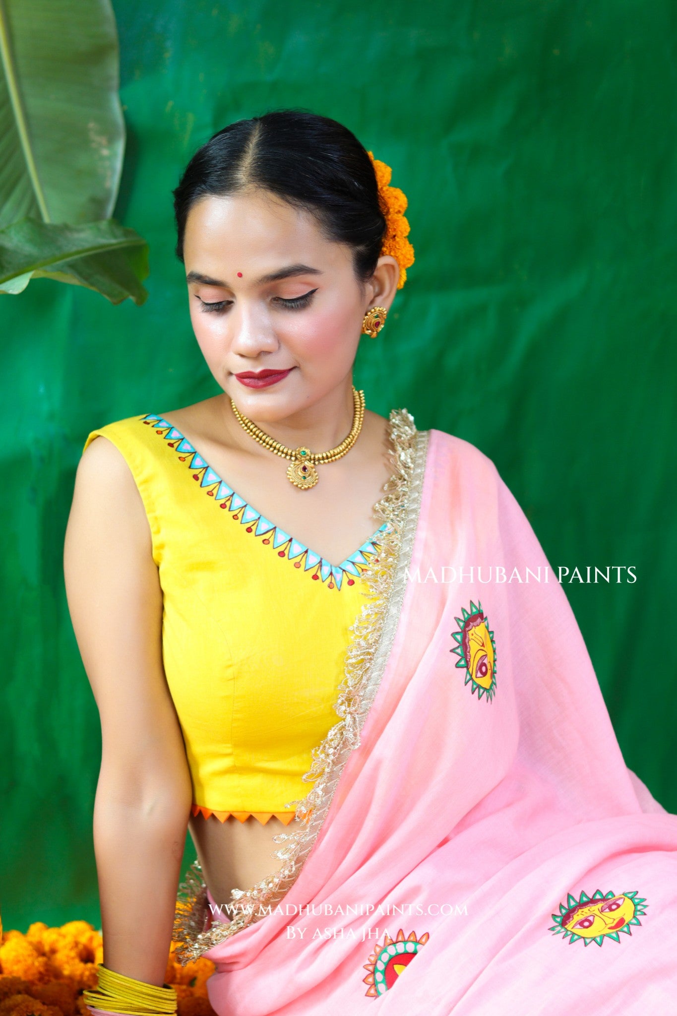 SURYA Chhath Puja Handpainted Madhubani Mul Cotton Saree Blouse Set