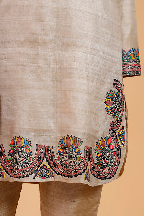 'Kamal Nain' Handpainted Madhubani Tussar Silk Kurta
