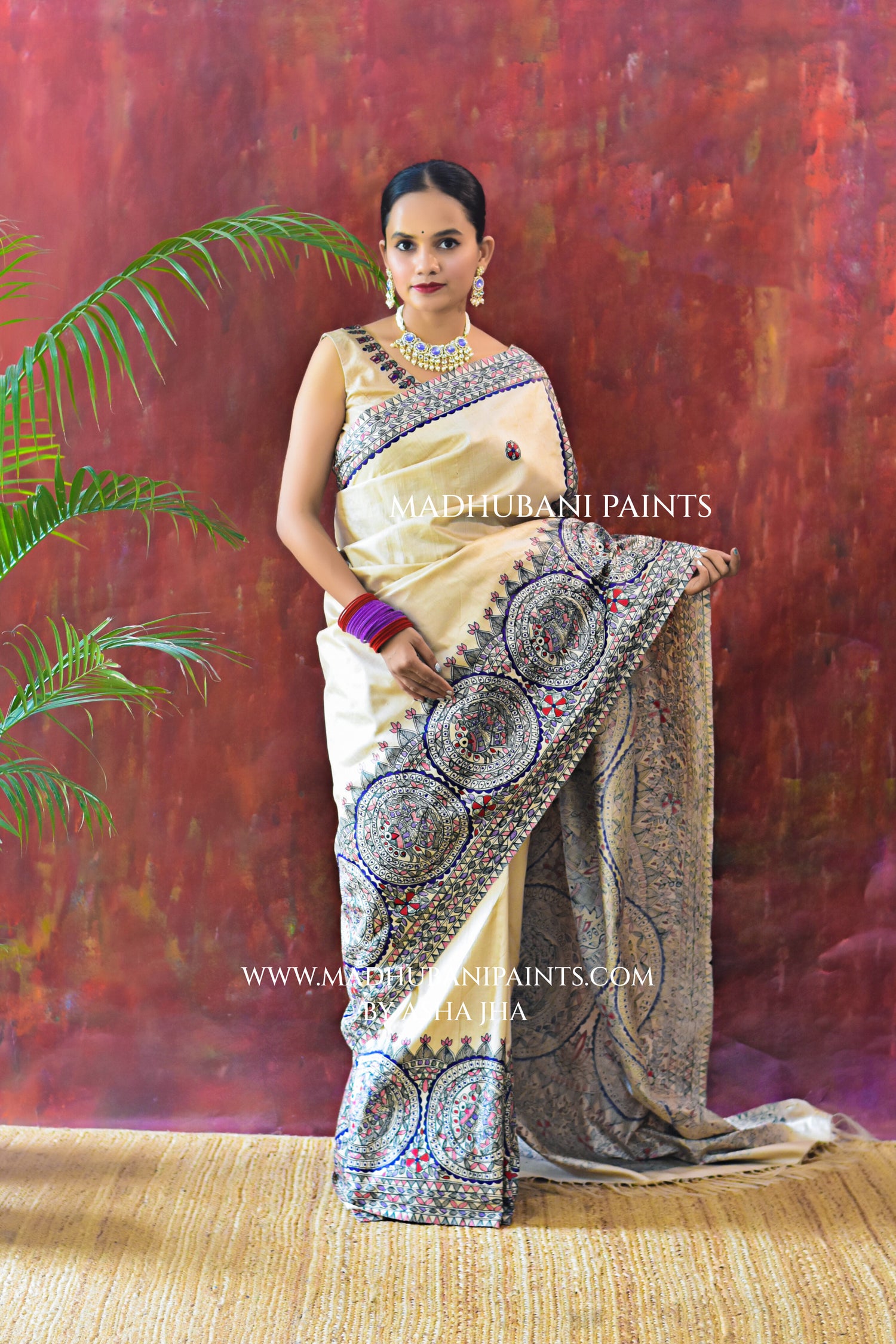 MITHILA Handpainted Madhubani Saree Blouse Set
